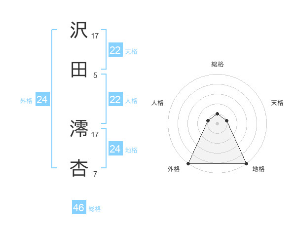 沢田 澪杏さんの外格は24画の5点!