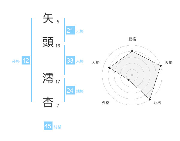 矢頭 澪杏さんの総格は45画の4点!