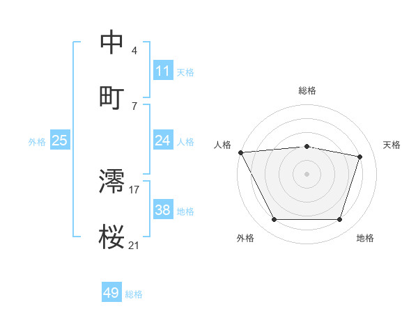 中町 澪桜さんを姓名の画数から五運を鑑定