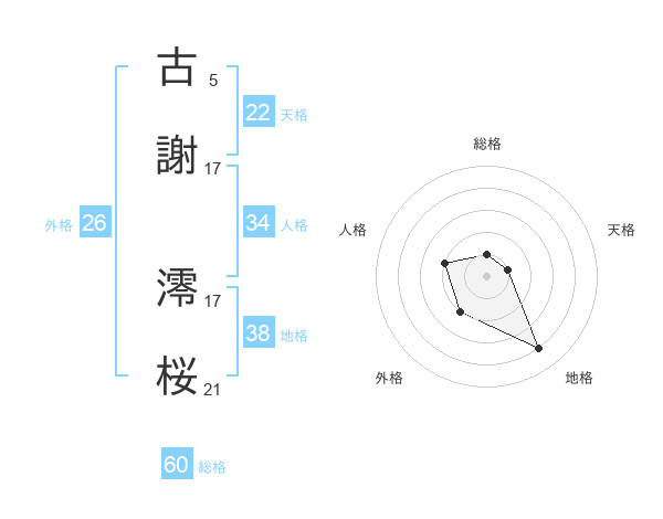 古謝 澪桜さんの総格は60画の1点!