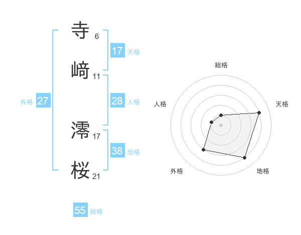 寺﨑 澪桜さんの天格は17画の4点!
