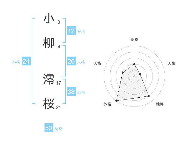 小柳 澪桜さんの外格は24画の5点!