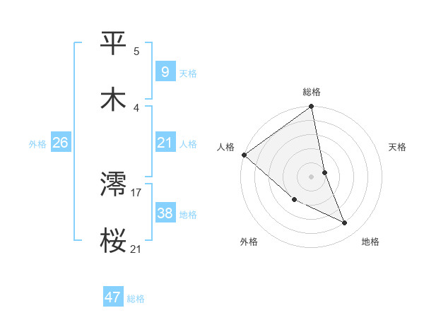 平木 澪桜さんの総格は47画の5点!
