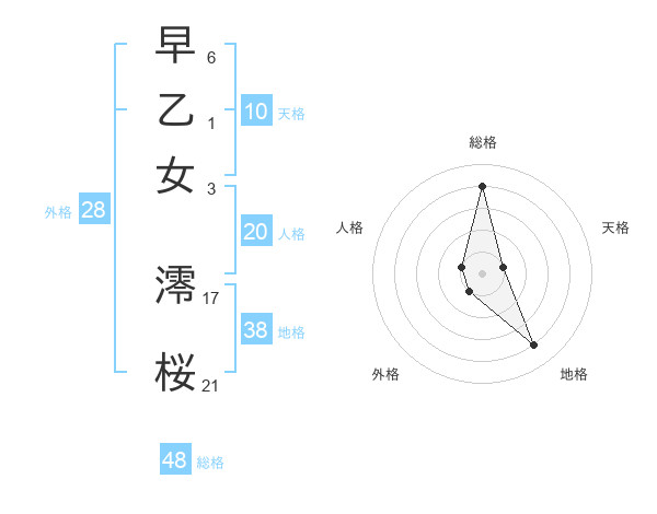 早乙女 澪桜さんを姓名の画数から五運を鑑定