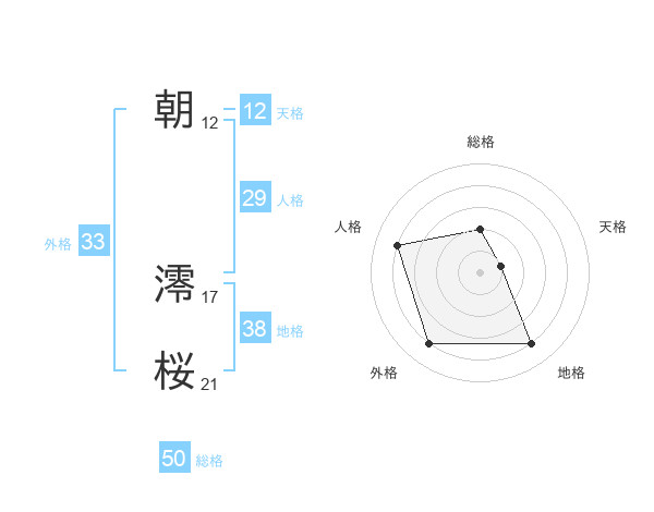朝 澪桜さんの総格は50画の2点!