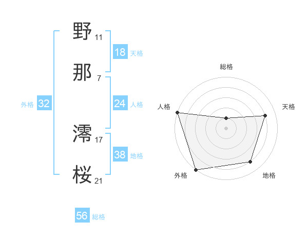 野那 澪桜さんの外格は32画の5点!