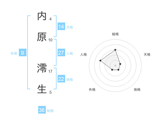 内原 澪生さんの地格は22画の1点!