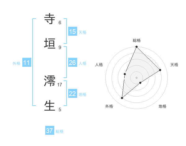 寺垣 澪生さんの総格は37画の5点!