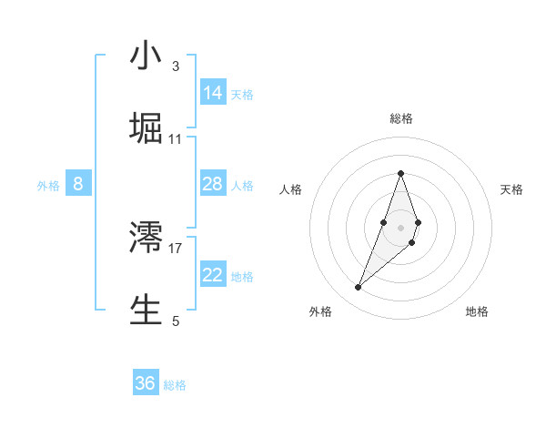 小堀 澪生さんの天格は14画の1点!