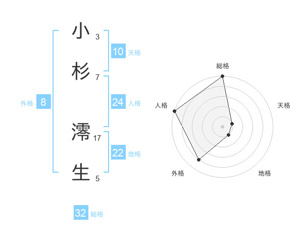 小杉 澪生さんの総格は32画の5点!