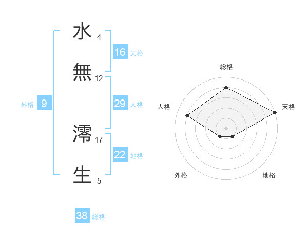 水無 澪生さんの総格は38画の4点!