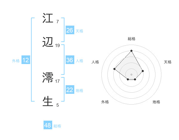 江辺 澪生さんの総格は48画の4点!