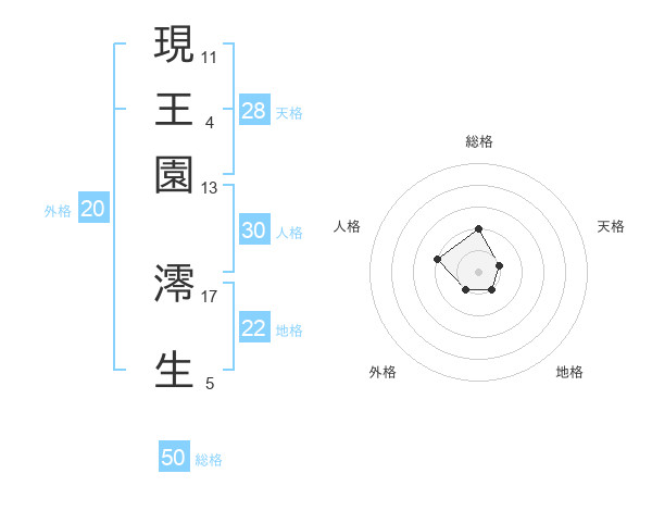 現王園 澪生さんを姓名の画数から五運を鑑定