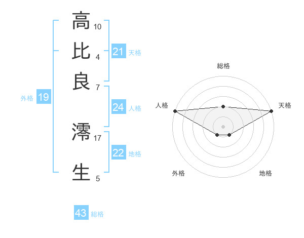 高比良 澪生さんの天格は21画の5点!