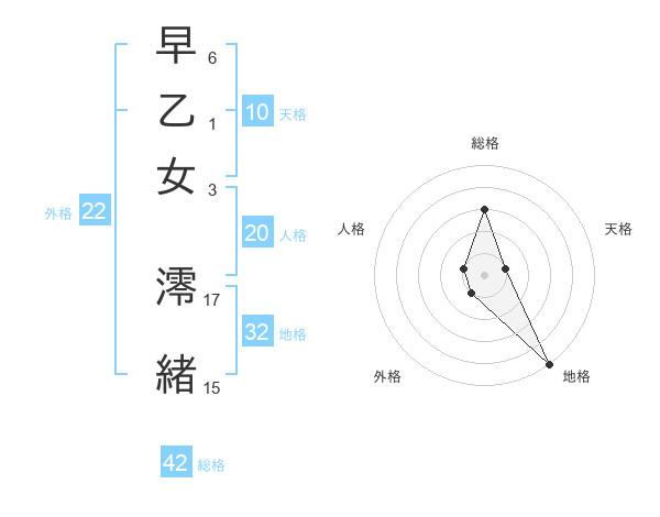 早乙女 澪緒さんを姓名の画数から五運を鑑定