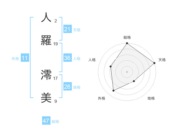 人羅 澪美さんの総格は47画の5点!