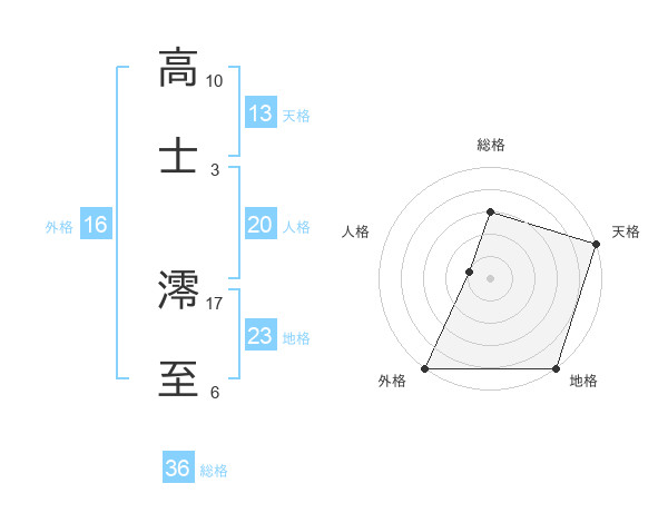 高士 澪至さんの天格は13画の5点!