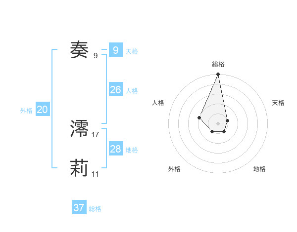 奏 澪莉さんの総格は37画の5点!