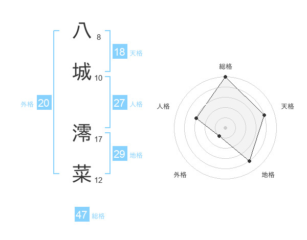 八城 澪菜さんの総格は47画の5点!