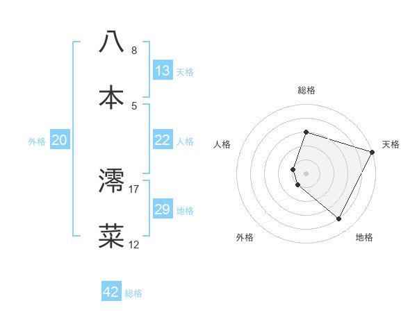 八本 澪菜さんを姓名の画数から五運を鑑定