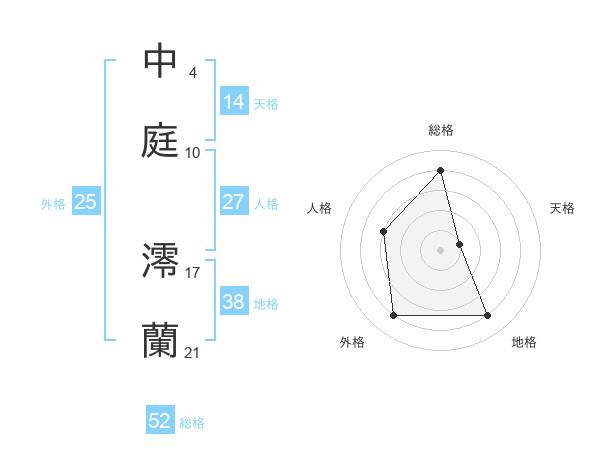 中庭 澪蘭さんを姓名の画数から五運を鑑定