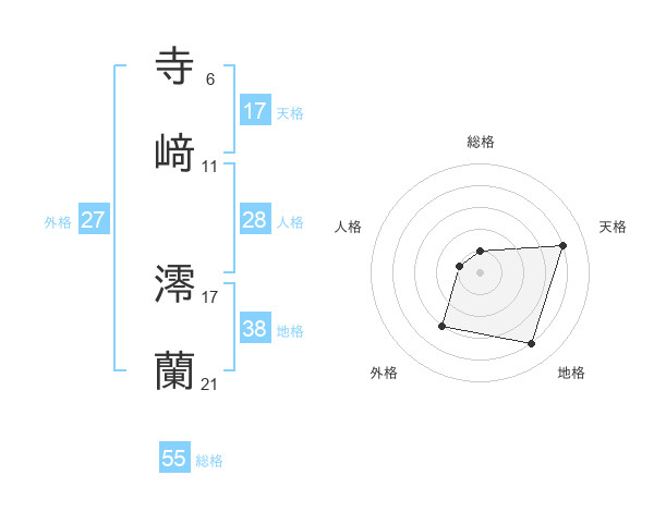 寺﨑 澪蘭さんの総格は55画の1点!