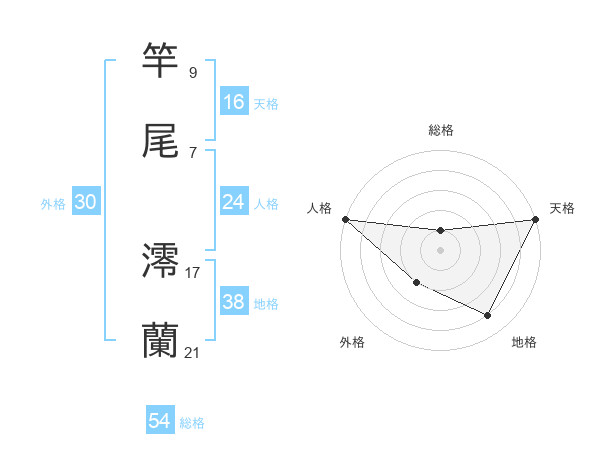 竿尾 澪蘭さんの総格は54画の1点!