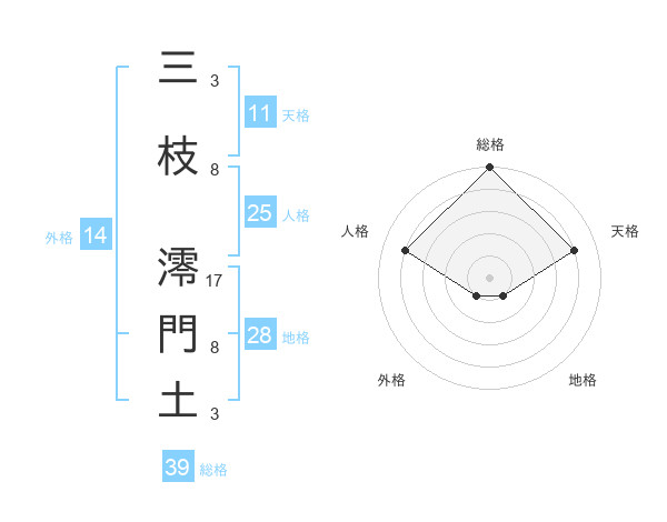 三枝 澪門土さんを姓名の画数から五運を鑑定