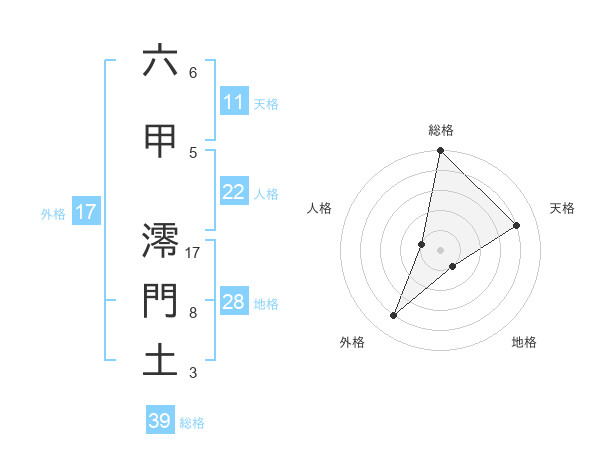 六甲 澪門土さんを姓名の画数から五運を鑑定