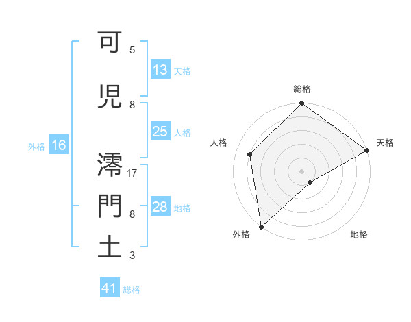 可児 澪門土さんの外格は16画の5点!