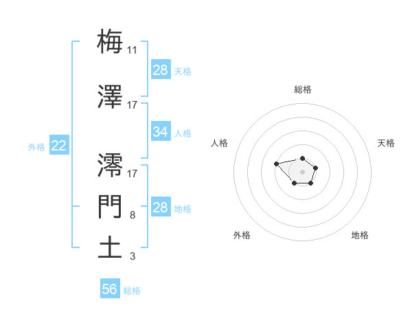 梅澤 澪門土さんを姓名の画数から五運を鑑定