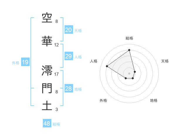 空華 澪門土さんの総格は48画の4点!