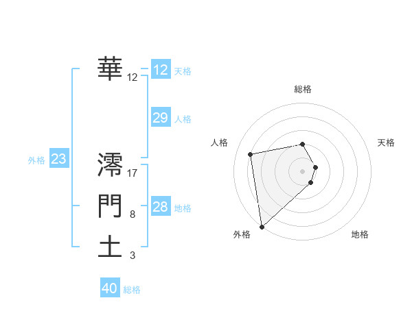 華 澪門土さんの外格は23画の5点!