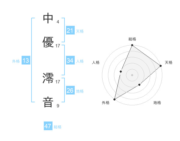 中優 澪音さんの総格は47画の5点!