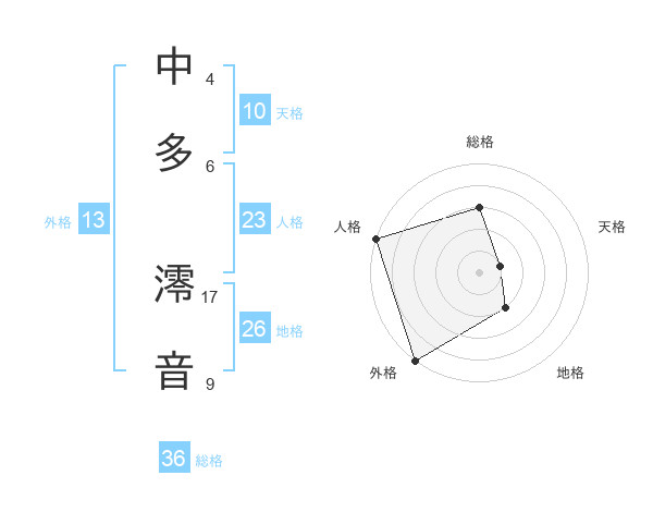 中多 澪音さんの外格は13画の5点!