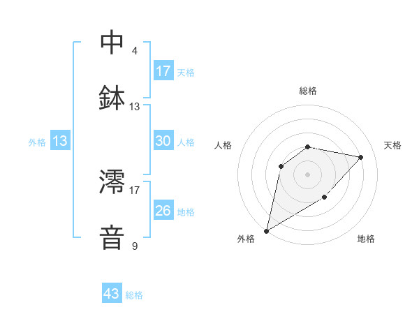中鉢 澪音さんの天格は17画の4点!