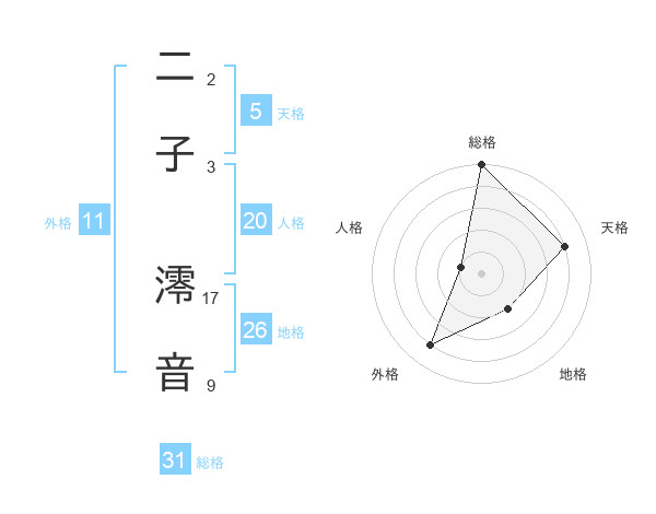 二子 澪音さんの総格は31画の5点!