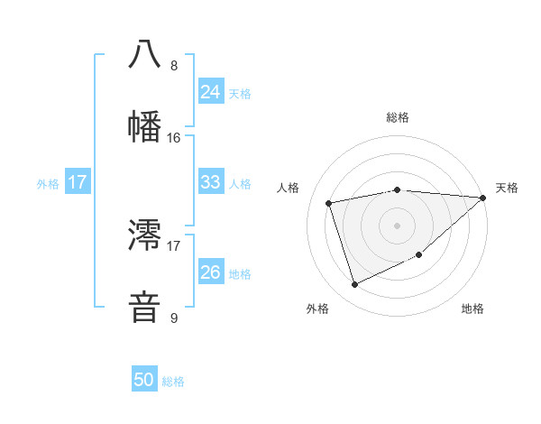 八幡 澪音さんの総格は50画の2点!