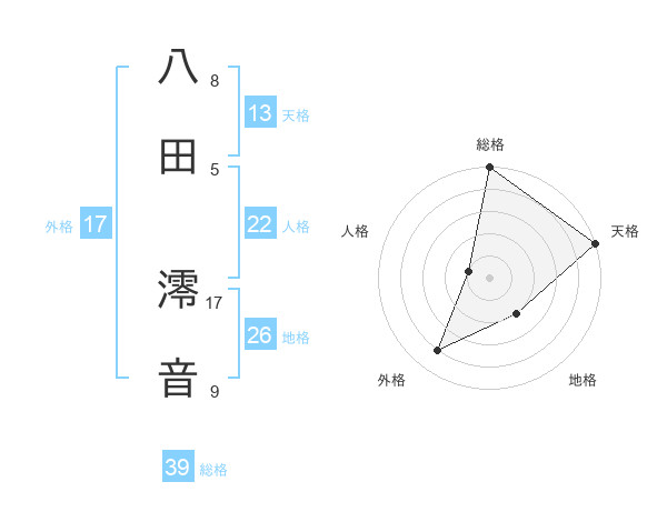 八田 澪音さんの天格は13画の5点!