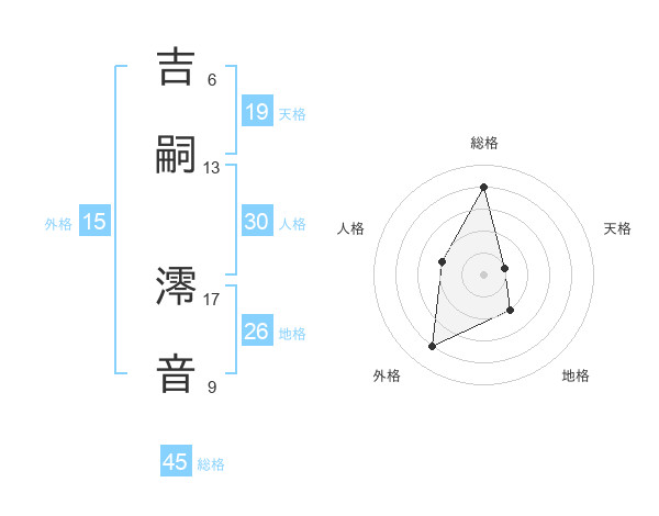 吉嗣 澪音さんの総格は45画の4点!