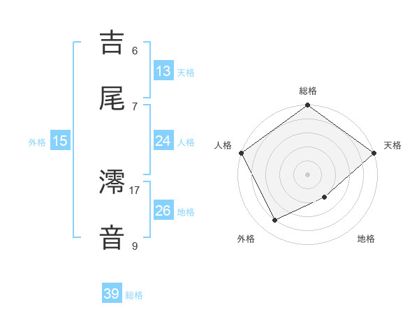 吉尾 澪音さんの天格は13画の5点!