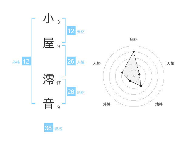 小屋 澪音さんの総格は38画の4点!