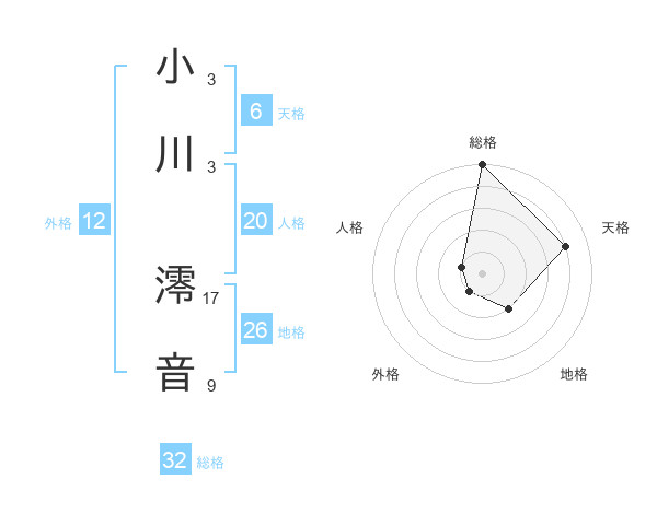 小川 澪音さんの総格は32画の5点!