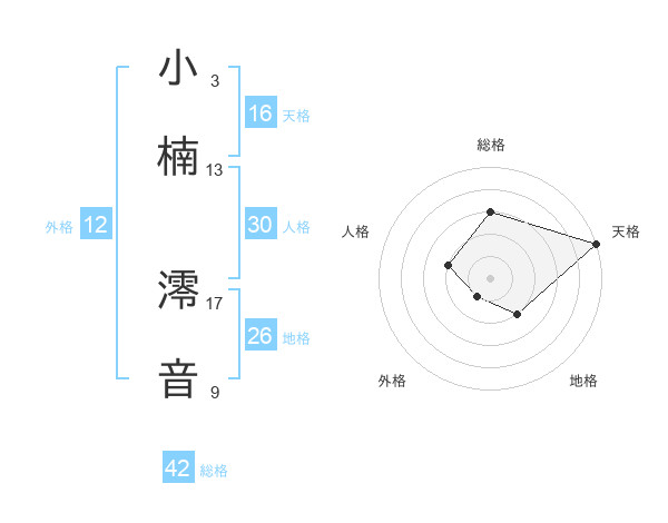 小楠 澪音さんの総格は42画の3点!