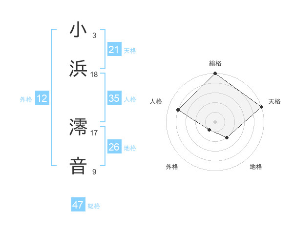 小浜 澪音さんの総格は47画の5点!