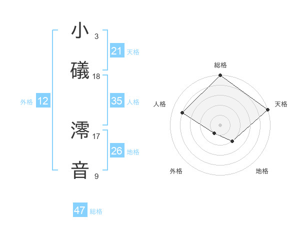 小礒 澪音さんを姓名の画数から五運を鑑定