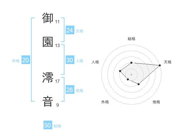 御園 澪音さんの総格は50画の2点!