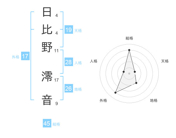 日比野 澪音さんの総格は45画の4点!
