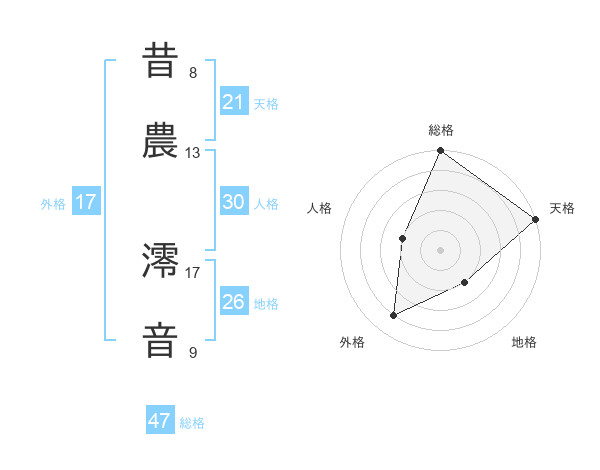 昔農 澪音さんを姓名の画数から五運を鑑定
