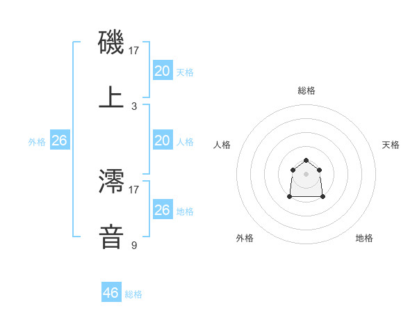 磯上 澪音さんの総格は46画の1点!